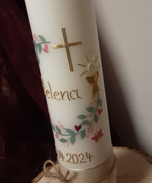 Ich habe begrenzte Kapazitäten für Kommunion- /Konfirmationskerzen, bitte bestellen Sie deshalb rechtzeitig.