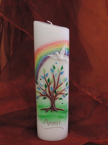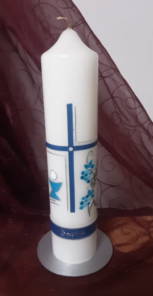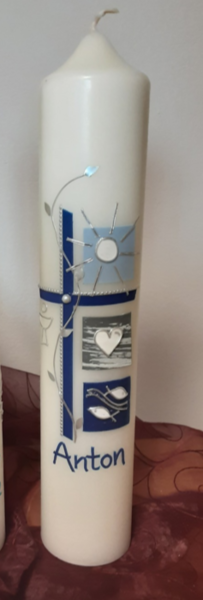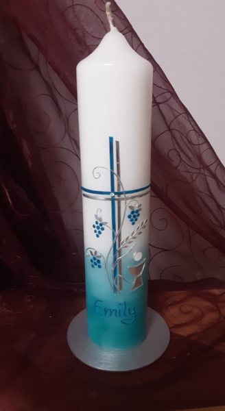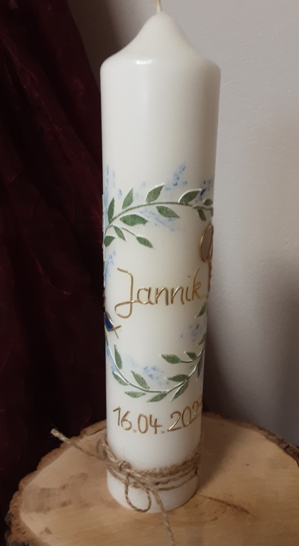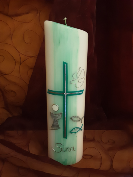 Gerne beschrifte ich auch als Alternative die vorhandene Taufkerze mit dem Kommunion- /Konfirmationsdatum und ggf. den Konfirmationsspruch. .