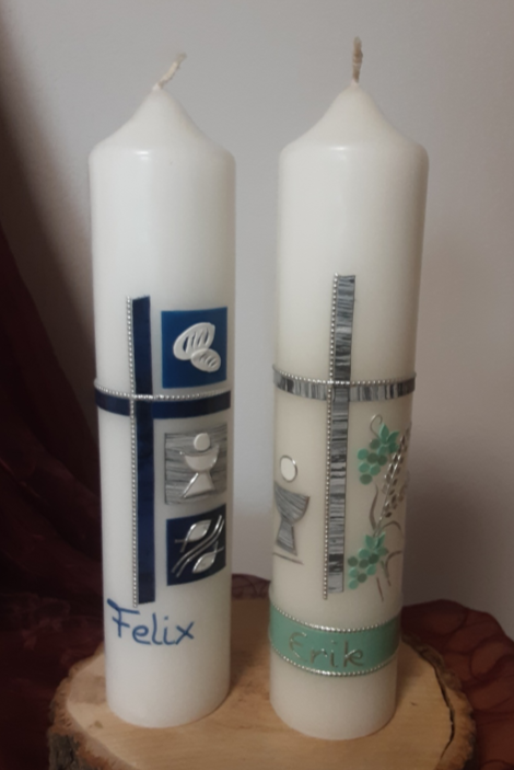 Ich biete für die Pfarreien in der Umgebung die Kommunionkerzen an. Der Bestellschluss ist der 15.01.2026. Das diesjährige Thema der Pfarreien Altenkunstadt/ Burgkunstadt/ Weismain ist "Ihr seid meine Freunde". Dieses Thema lässt sich sehr vielfältig darstellen. Ich berate Sie hier gerne.